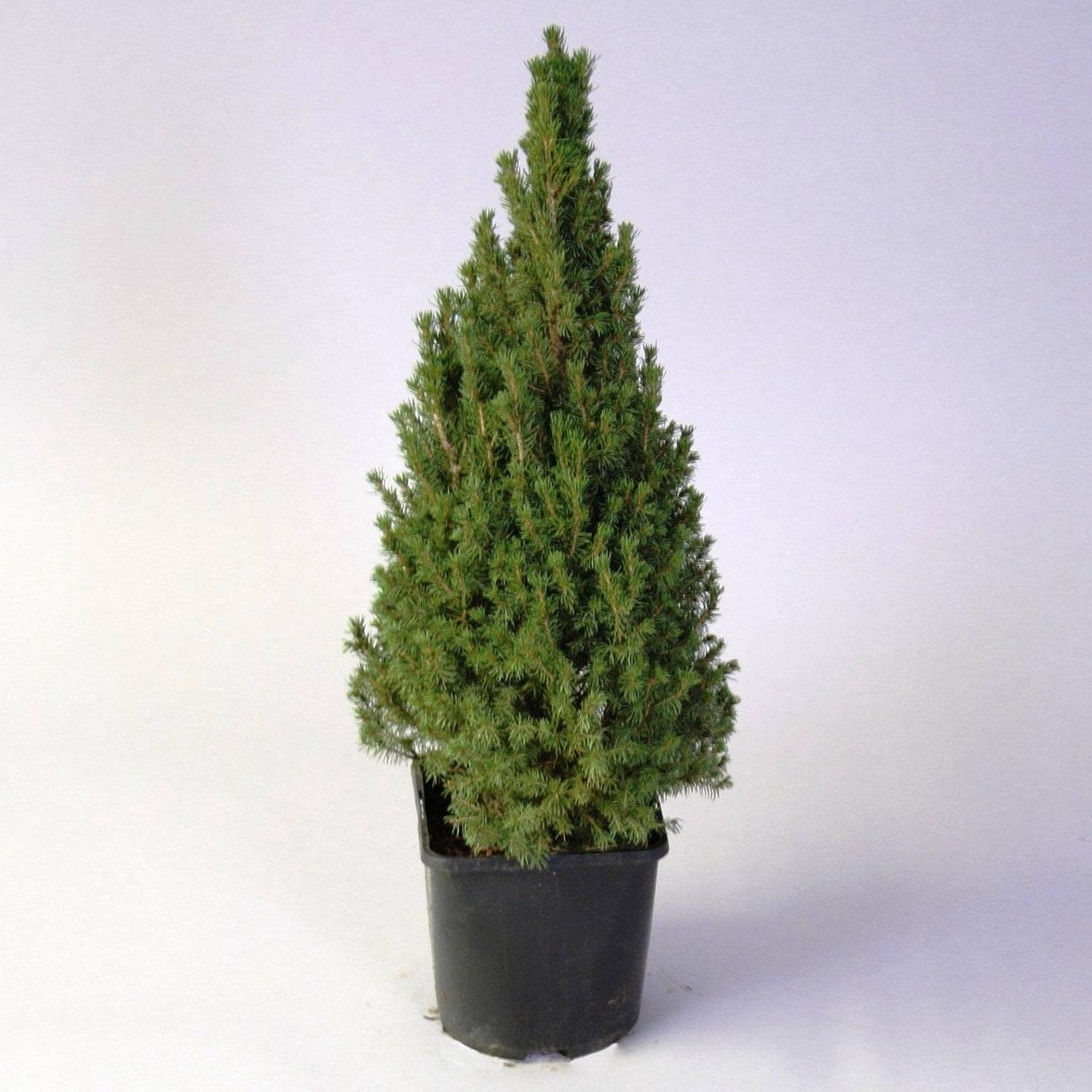 Ель канадская Коника (Picea canadensis conica) является карликовым сортом сизой Ели (Picea glauca) семейства Сосновые (Pinaceae). В некоторых источниках называется Ель Глаука Коника (Picea Glauca Conica). Ель коника (Picea conica) растет медленно: 3-6 см в год. Далее рост замедляется до 2-3 см в год. К 10-летнему возрасту деревце поднимется на 1,5 м; в 30 лет – 2-2,4 м. В благоприятных условиях высота взрослого дерева достигает максимум 3-4 м. Данный вид ели имеет конусовидную форму. Ветки пушистые, крона густая, так как междоузлия маленькие. Иголки светло-зеленые, мягкие, достигают от 6 до 10 мм в длину. В диаметре ель может достигать 80 см. Корни ели Коника не углубляются далеко в почву, основная часть корневой системы располагается ближе к поверхности почвы. Что касается интенсивности роста, то она является достаточно медленной. У взрослой ели прирост в два-три см в год. До 10 или 15 лет деревце растет активно, прибавляя по 6-8 см в год. Продолжительность жизни у данной ели очень высокая – от трехсот до пятисот лет. Коника подходит для того, чтобы выращивать в условиях средней полосы.