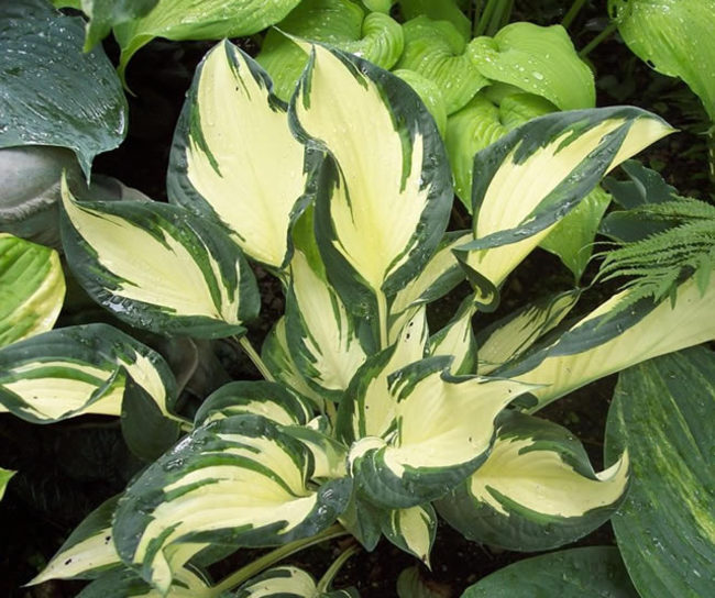 - Полное название растения Хоста гибридная Дансинг ин зе Рейн