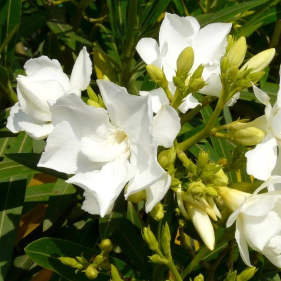 Олеандр обыкновенный Монтблан (лат. Nerium oleander Montblanc) - растение с узкими и длинными кожистыми листочками зеленого окраса. На кончиках мощных стеблях собраны соцветия крупных снежно-белых махровых цветков, обладающих сладким ароматом. . Внимание! Олеандр - ядовитое растение, поэтому при его культивировании требуется осторожность.