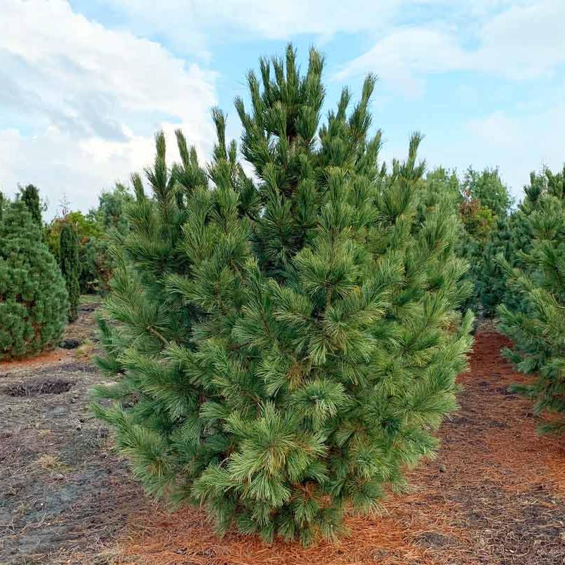 Хвоя/Листва - Длинная (5-8см), тонкая, в пучках по 5, темно-зеленая с голубоватыми устичными полосками..