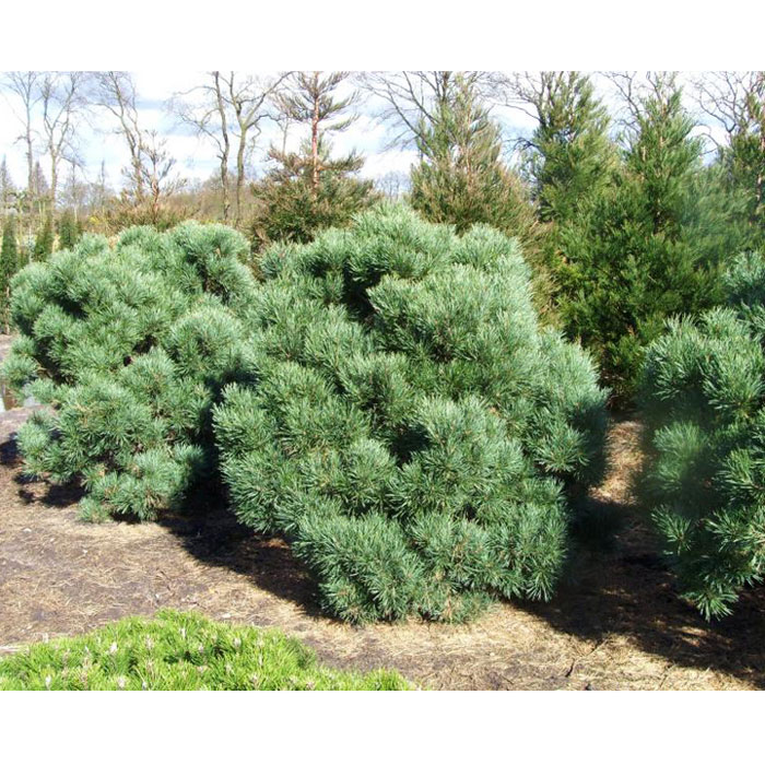 Взрослое растение достигает 4 м в высоту и столько же в ширину. Крону формирует округлой, кустовой формы. Ветки плотно прилегают друг к другу, густые, поэтому сосна напоминает пушистый шар. Крупномер обыкновенная «Ватерерри» в зависимости от условий выращивания дает ежегодный прирост до 0,5 м. Побеги покрыты жесткой хвоей (длина около 4 см) зеленовато-голубого оттенка. Сосна хорошо себя чувствует как в полутени, так и на открытых солнечных участках.